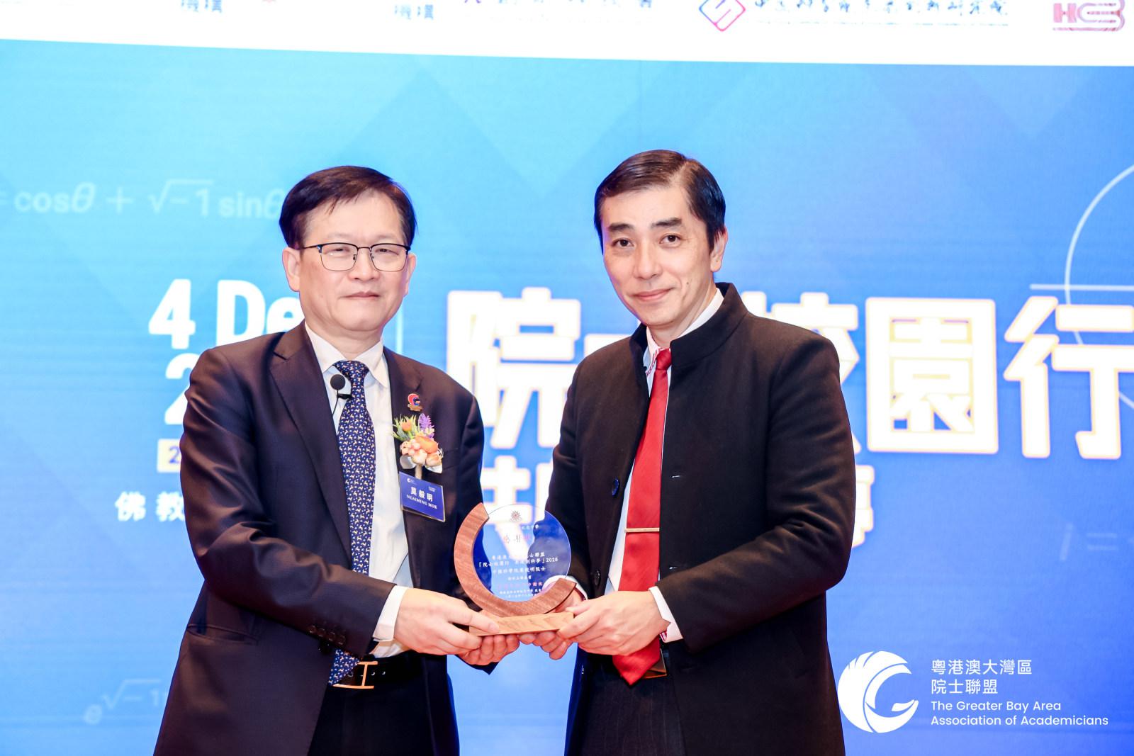莫院士(左)獲頒感謝獎杯