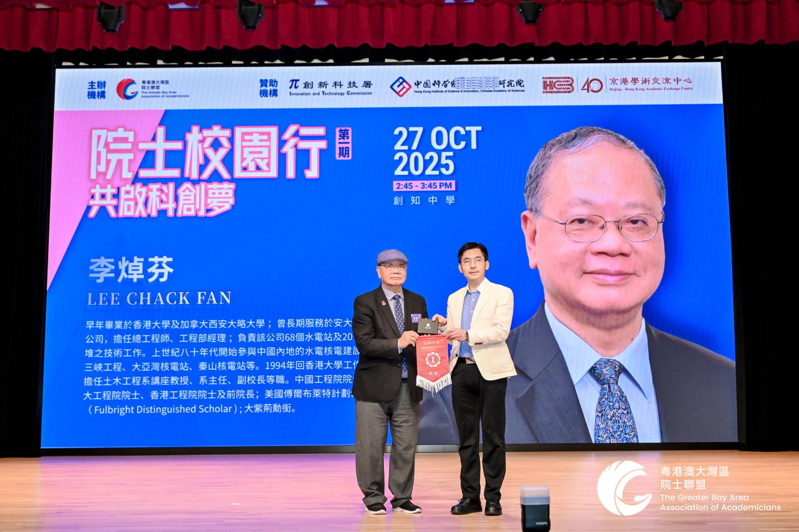 In line with the national call in China’s 14th Five-Year Plan to support Hong Kong’s development as an international centre for innovation and technology, and to inspire young students to better understand China’s scientific achievements and cultivate an innovative spirit—the “Academicians on Campus” initiative, organised by The Greater Bay Area Association of Academicians, was held on the afternoon of October 27 at Scientia Secondary School.
